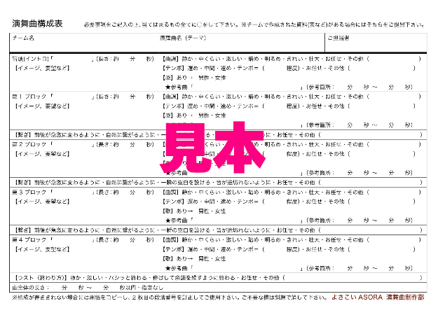 すべての詳しい詳細等は「よさこいASORA 演舞曲制作部」からチェック!!